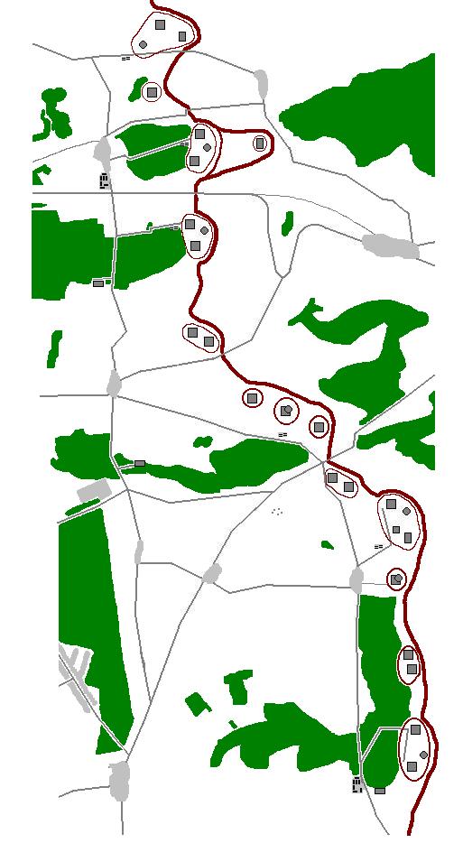Au-delà du PO de Téting (qui marque l'extrémité droite de la Région Fortifiée de Metz) commence la zone inondable de la Sarre, avec ses fortifications légères. Le 146e RIF occupe encore une série de petits blockhaus sur quelques kilomètres. La prolongation est défendue par les 69e et 82e RMIF (SF de la Sarre). Ces deux régiments seront intégrés au SFF au courant de l'année de guerre. Le prochain ouvrage de la Ligne Maginot est le Haut-Poirier, à plus de 35km à l'Est !