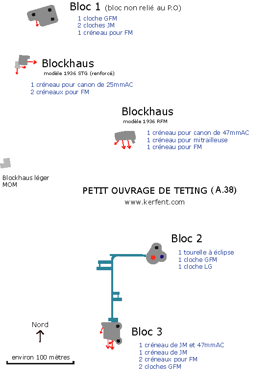 Schéma d'organisation du Petit Ouvrage de TETING (A.38)
